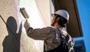 最後の仕上げ。見た目の美しさだけでなく、雨風や紫外線から壁を守るバリアを完成させる。